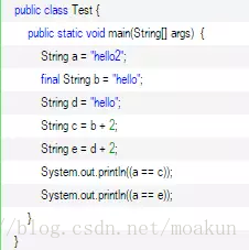 同样是字符串"hello",为什么用final定义的,且个进行==操作却是true有一个是false,而没用final的却是false?