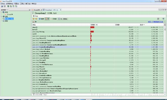 或者使用java/bin/目录下面的jvisualvm图形界面工具(推荐)直接装入dump文件即可。