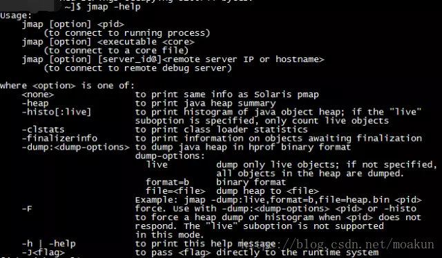 jmap -help查看命令用法。