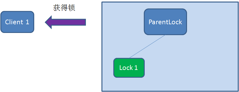 之后,Client1查找ParentLock下面所有的临时顺序节点并排序,判断自己所创建的节点Lock1是不是顺序最靠前的一个。如果是第一个节点,则成功获得锁。