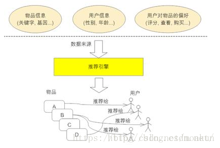将一个产品推荐给一个用户。设计到的对象有两个,产品和用户。还有两者的交互。所以数据源有三个方面。