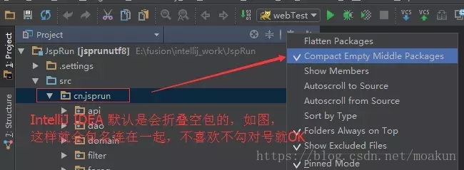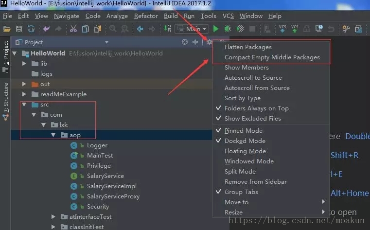 这样子配置,可以很清楚的看到目录的层级结构。但是你要是点了,他就会把空的包直接连在一起,就是com.lxk.aop。。。。等等吧,试一下就知道啦。