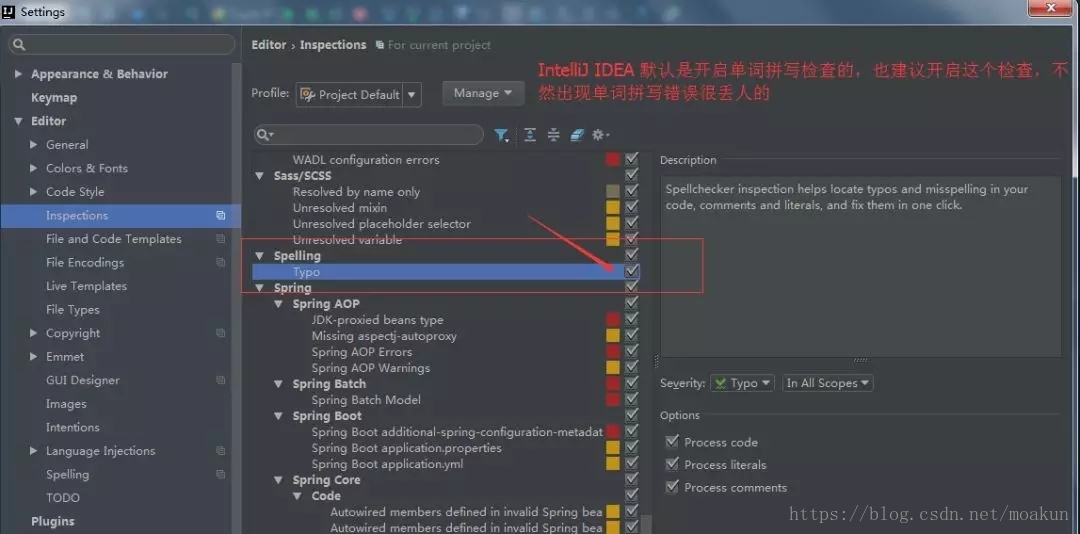强烈建议,不要嫌弃他这个单词拼写检查,这也是为你好啊,免得你写一个简单的单词,但是你却写错了,还提示你使用驼峰命名法。也是很好的。点击这里查看Intellij IDEA非常6的十个姿势!