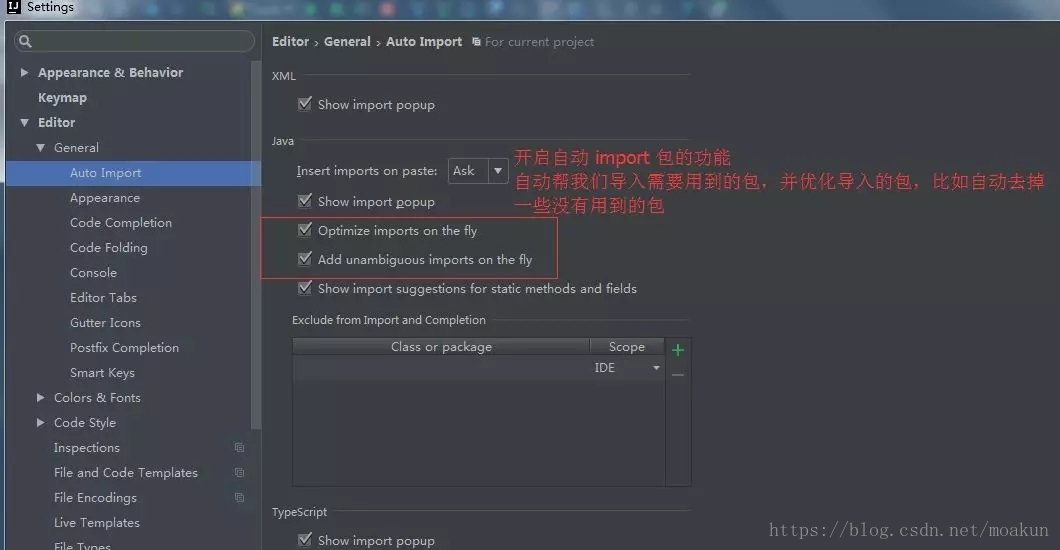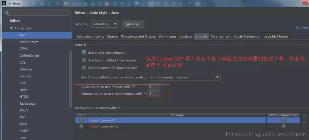 还有就是优化引入,假设你引入了一个包下的很多个文件,他就会给你优化成xxx包名.*。也就是下面这个图的配置啦。