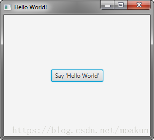 package helloworld; import javafx.application.Application; import javafx.event.ActionEvent; import javafx.event.EventHandler; import javafx.scene.Scene; import javafx.scene.control.Button; import javafx.scene.layout.StackPane; import javafx.stage.Stage; public class HelloWorld extends Application { @Override public void start(Stage primaryStage) { Button btn = new Button(); btn.setText("Say 'Hello World'"); btn.setOnAction(new EventHandler<ActionEvent>() { @Override public void handle(ActionEvent event) { System.out.println("Hello World!"); } }); StackPane root = new StackPane(); root.getChildren().add(btn); Scene scene = new Scene(root, 300, 250); primaryStage.setTitle("Hello World!"); primaryStage.setScene(scene); primaryStage.show(); } public static void main(String[] args) { launch(args); } }