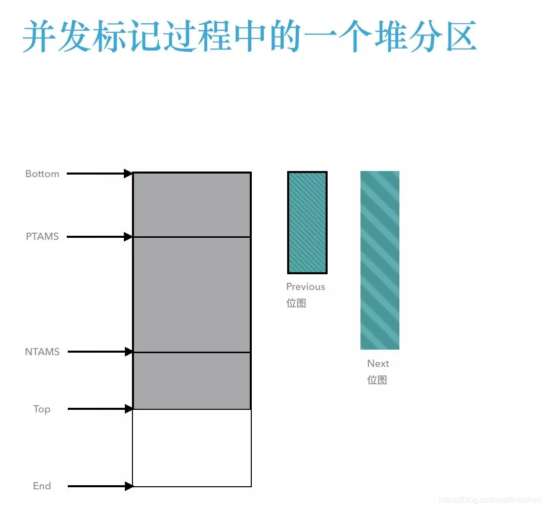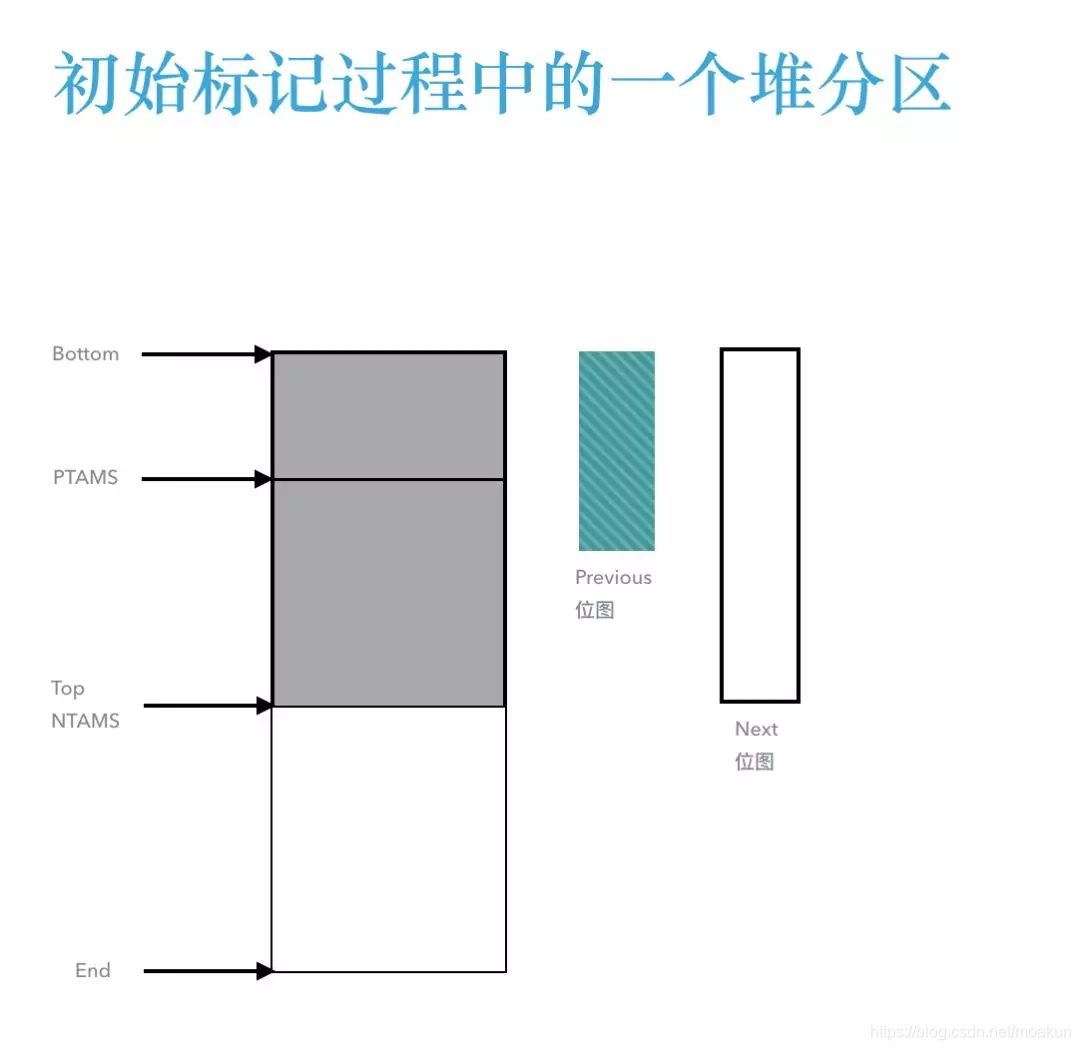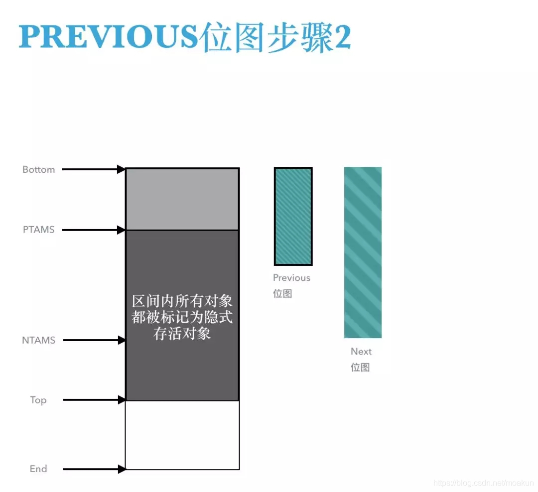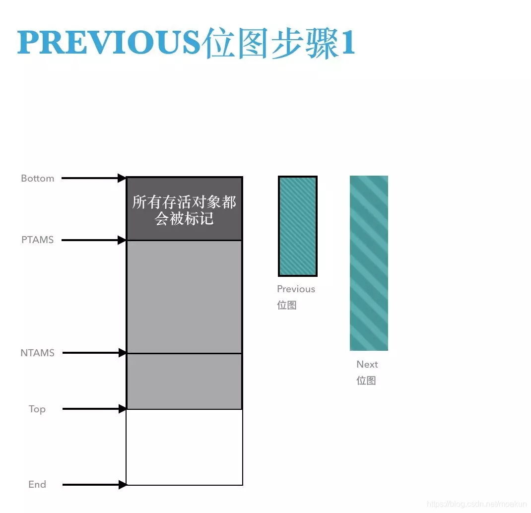 位于堆分区的Bottom和PTAMS之间的对象都会被标记并记录在previous位图中;