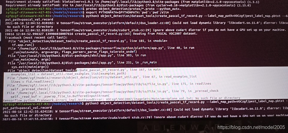 根据要求把文件放到各自目录后。先把数据集转成训练需要的train.record和val.record格式。