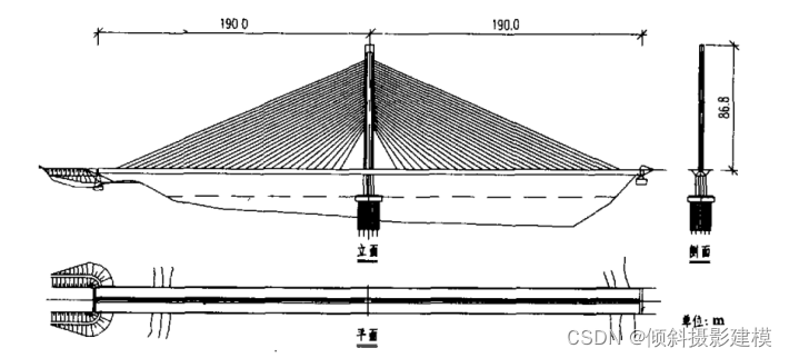 某斜拉桥位于安徽省黄山市境内,连接黄山区与池州区的过江通道,为北京-台北高速公路(国家高速G3)的组成部分之一。独塔单索面预应力砼斜拉桥,全长380米,中间设一主墩,高130米,跨径组合为190+190米,主塔两侧共设27对斜拉索,呈扇形对称布置。 桥面高出江面270米,桥型结构复杂、施工技术难度高,于1996年建成并投入使用,经过近多年的运营使用,斜拉桥的检测工作存在以下困难: