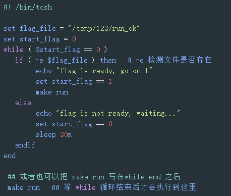 1). 每隔半小时检测一次 flag 文件是否存在,不存在就继续等待,若存在就执行make run