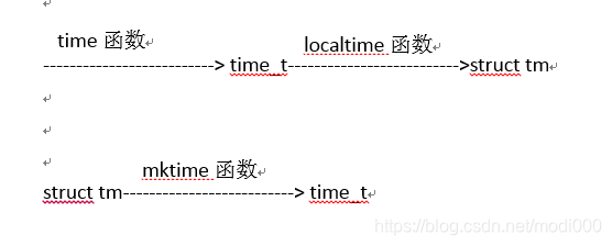 如上图所示:通过time函数取得世纪秒,-----》通过localtime 转换成struct tm----------->通过mktime函数又转换成time_t格式。