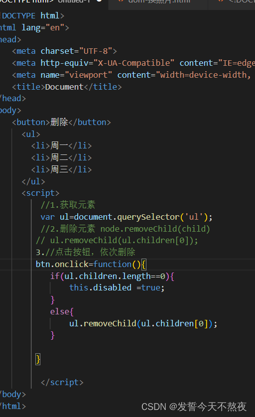 node.removeChild()方法从DOM中删除一个子节点,返回删除节点