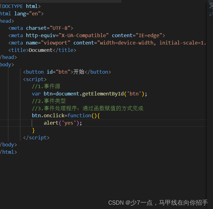 - 添加事件处理程序(采取函数赋值形式)