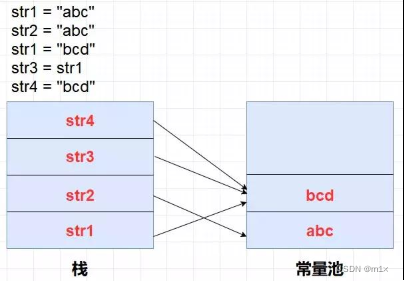 - 如果不存在则在常量池中创建"abc",并让str引用该对象