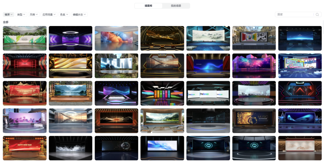 场景空间感:提供 500+专业级3D场景,从科技感演播厅到沉浸式教室,3D光影效果;
