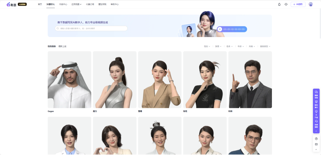 根据品牌调性定制3D形象,生成你的专属虚拟代言人;