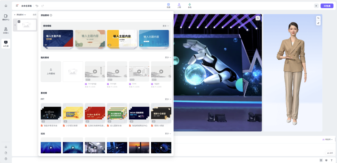AI数字人智能讲解,搭配自然动作+表情,结合PPT演示内容;