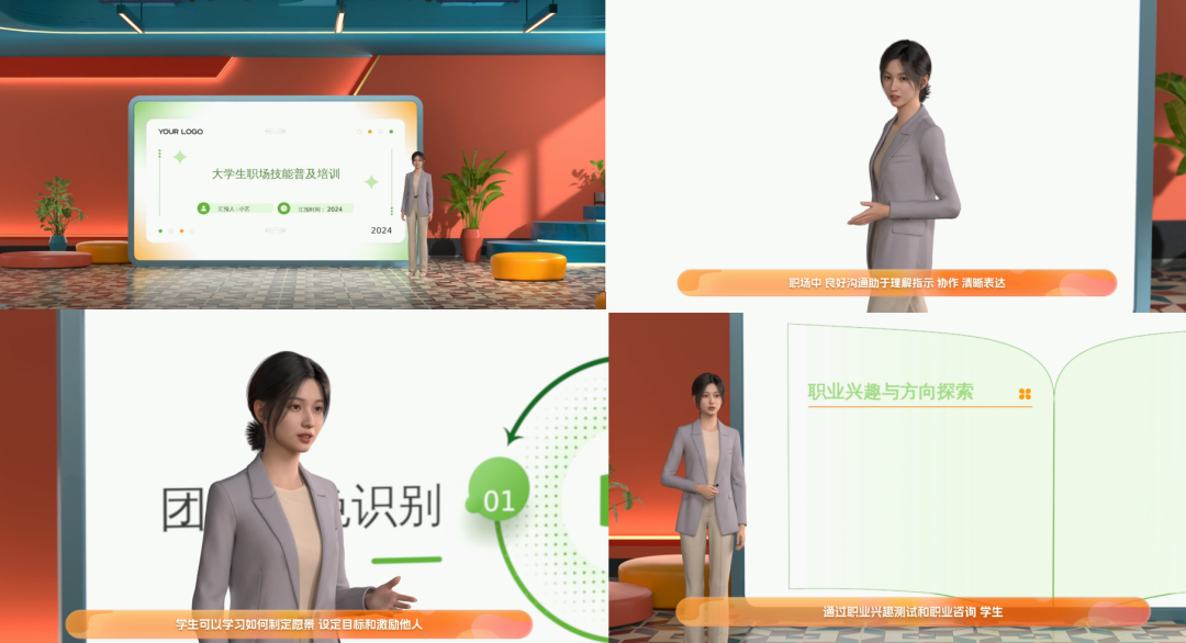 表达逻辑化:智能协调数字人的动作、手势,镜头切换贴合内容节奏,使重点更突出。