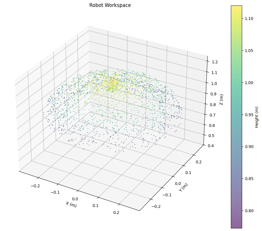 在我们的简化模型中,两个连杆是位于同一平面的直杆,因此 α i \alpha_i αi 和 d i d_i di 均为 0(除了 α 0 = 9 0 ∘ \alpha_0=90^\circ α0=90∘),只需给出连杆长度 d i d_i di 即可。 θ i \theta_i θi 作为关节变量需配置其运动范围。