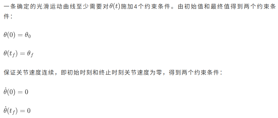 在这里,我们使用五次多项式进行轨迹规划,以限制 θ ¨ ( 0 ) = θ ¨ ( t f ) = 0 \ddot\theta(0)=\ddot\theta(t_f)=0 θ¨(0)=θ¨(tf)=0