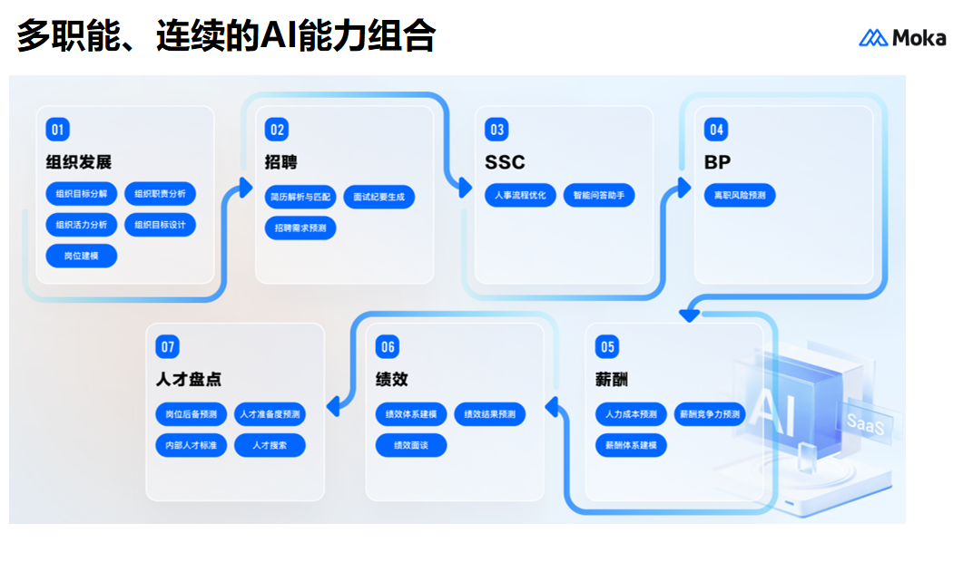 AI 技术已成为绩效管理系统软件的核心竞争力。具备 AI 能力的系统可实现智能目标推荐,基于岗位属性与员工能力自动生成合理目标;通过绩效数据智能分析,精准识别人才优势与短板,避免主观偏差;借助智能反馈助手,实时生成专业反馈建议,提升评估质量。Moka 早在 2018 年就布局 AI 研发,其绩效管理模块搭载 AI 原生技术,支持多模态数据解析与智能流程编排,让考核更高效、更精准,10 倍提升 HR 工作效率。