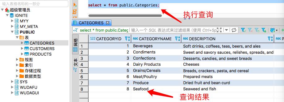 INSERT INTO public.Categories (CategoryName, Description, Picture) VALUES('Seafood','Seaweed and fish', '');**添加表要注意,如果是联合主键,可以按照业务的特点,将一个主键设置为 affinity_key **