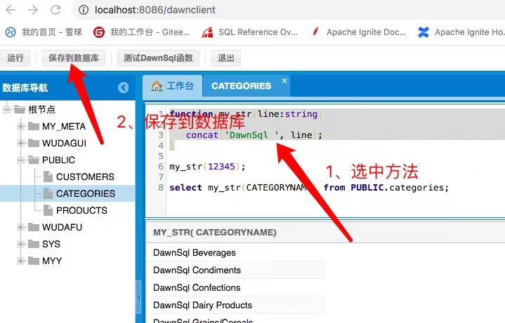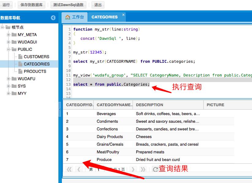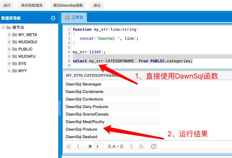 -- 2、当把 DawnSql函数中提交到数据后,就可以在 sql 和 DawnSql 中使用这个函数