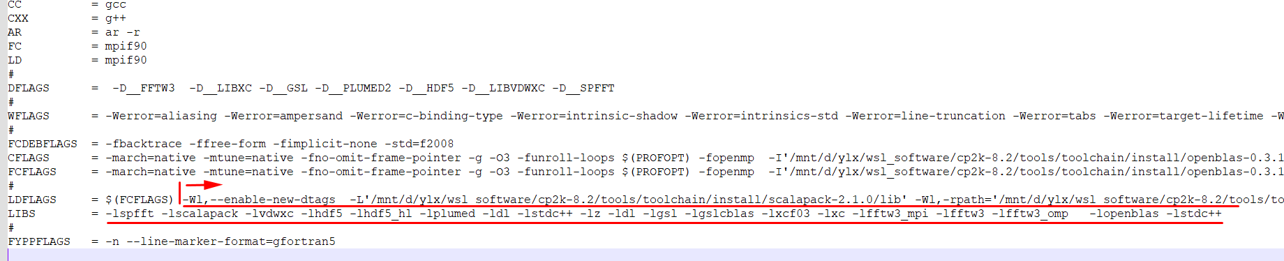 -DCP2K_LINKER_FLAGS=" 需要添加的东西 " \
