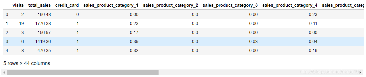 打开csv文件,可以发现total_sales是一列汇总数,等于sales_stores_n几列相加,n为1到4。我们可以直接把sales_stores给drop了,减少共线性。