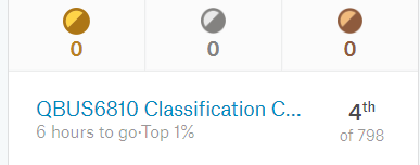 目前是小型比赛的public lb第四名,自己对此也比较满意了,从中也学到不少知识。发个图纪念一下,从一开始的0.76,到0.85,再到现在0.86139,每一次的进步都来之不易。之后private lb选了一个比较低的提交,因为是校外的,就不影响他们的成绩了。
