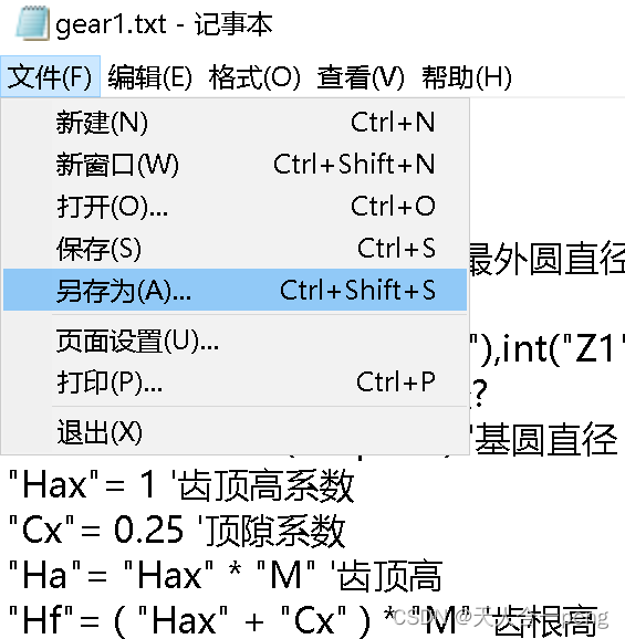 "Hf"= ( "Hax" + "Cx" ) * "M" '齿根高