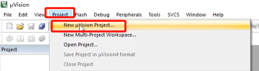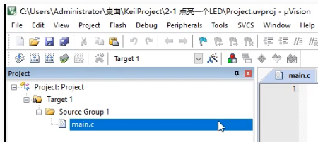 双击打开keil,进入到软件,创建一个新的项目,选择保存地址(2-1),起工程名为Project,点击保存: