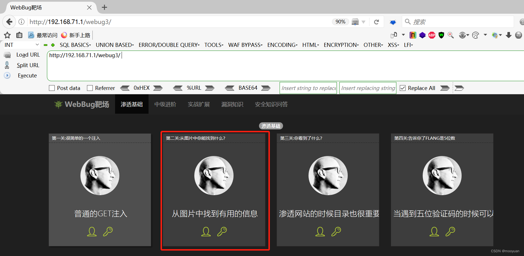 进入靶场的第二关从图片找到有用的信息,下图红框所在关卡。