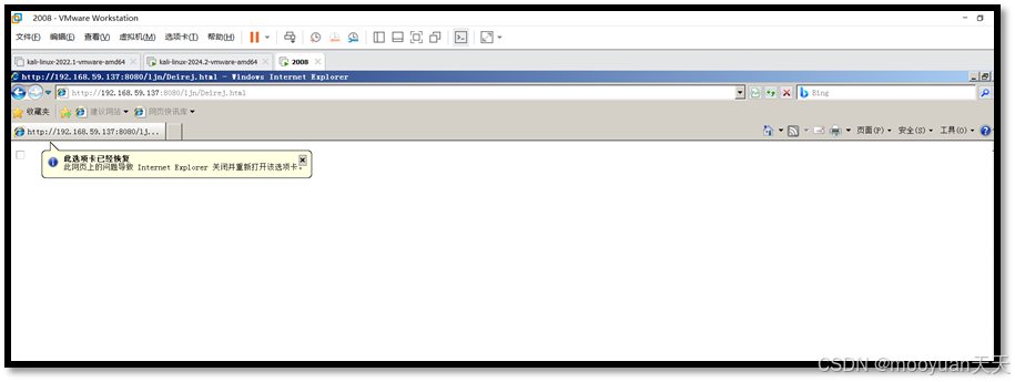 在靶机(windows server2008)中使用ie访问存储型XSS页面,如下所示。