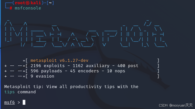 攻击机使用msconsole启动MSF模块
