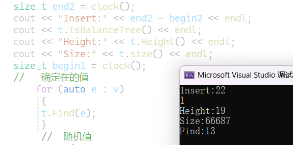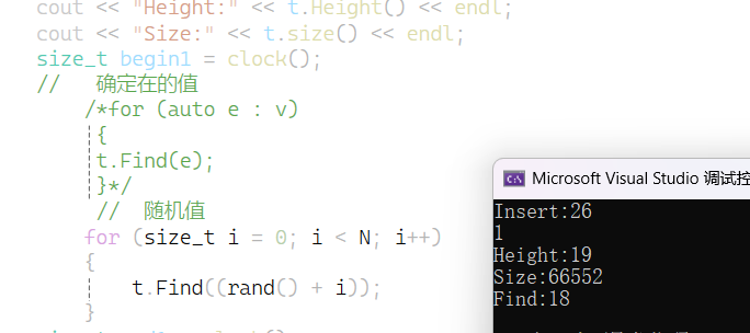 可以发现插入的速度要比查找的速度慢一些 因为插入一定需要到叶子节点才能插入 而查找可能在中途就结束了 而且插入还需要new开空间 这也是有损耗的 具体值的查找快于随机值的查找也是因为具体值的查找更有可能中途就找到