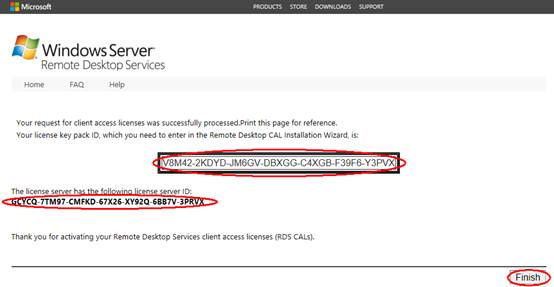 2.7 可以得到“已成功处理您的许可证服务器启动申请。你的许可证ID是:GCYCQ-7TM97-CMFKD-67X26-XY92Q-6BB7V-3PRVX”,记录此服务器ID号。在“需要此时获取客户机许可证吗”中选择”是” 。