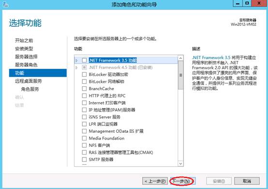 1.6. 选择“桌面会话主机”和“远程桌面授权 ”,在弹出的窗口中点击“添加功能”,点击下一步。