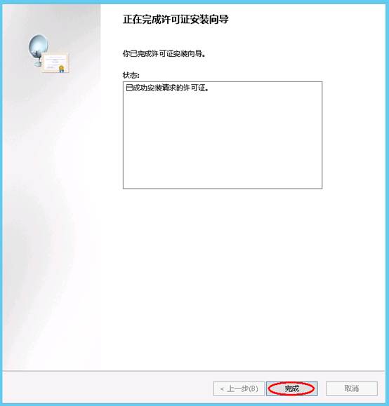 2.11 在下边界面中,记录许可证服务器ID:GCYCQ-7TM97-CMFKD-67X26-XY92Q-6BB7V-3PRVX”和“许可证密钥ID:V8M42-2KDYD-JM6GV-DBXGG-C4XGB-F39F6-Y3PVX”,然后点击完成。