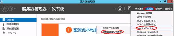 3.1 在服务器管理器中,点击工具-终端服务-远程桌面授权管理器,查看并确保服务器