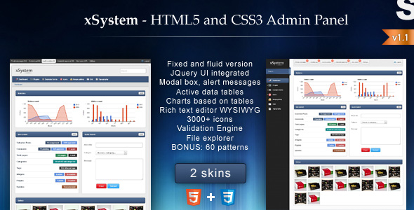 - 2 skins fixed with horizontal menu and fluid with sidebar
