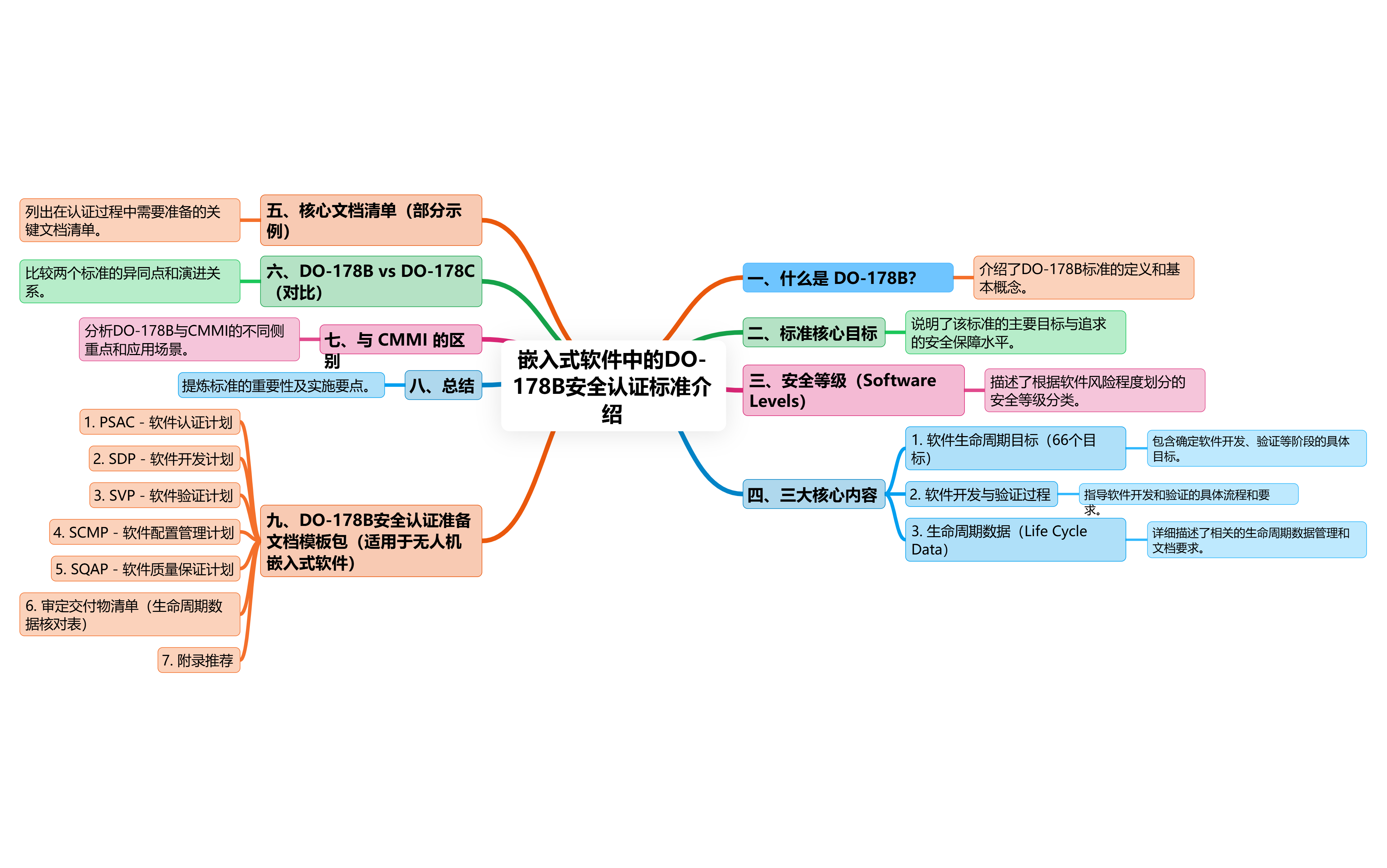 DO-178B 是全球航空软件行业中最重要的安全认证标准之一,主要用于确保机载软件具备足够的安全性、可靠性和可验证性。以下是对 DO-178B 安全认证标准 的全面解析,适合用于航空嵌入式系统开发、审定准备或符合性评估。