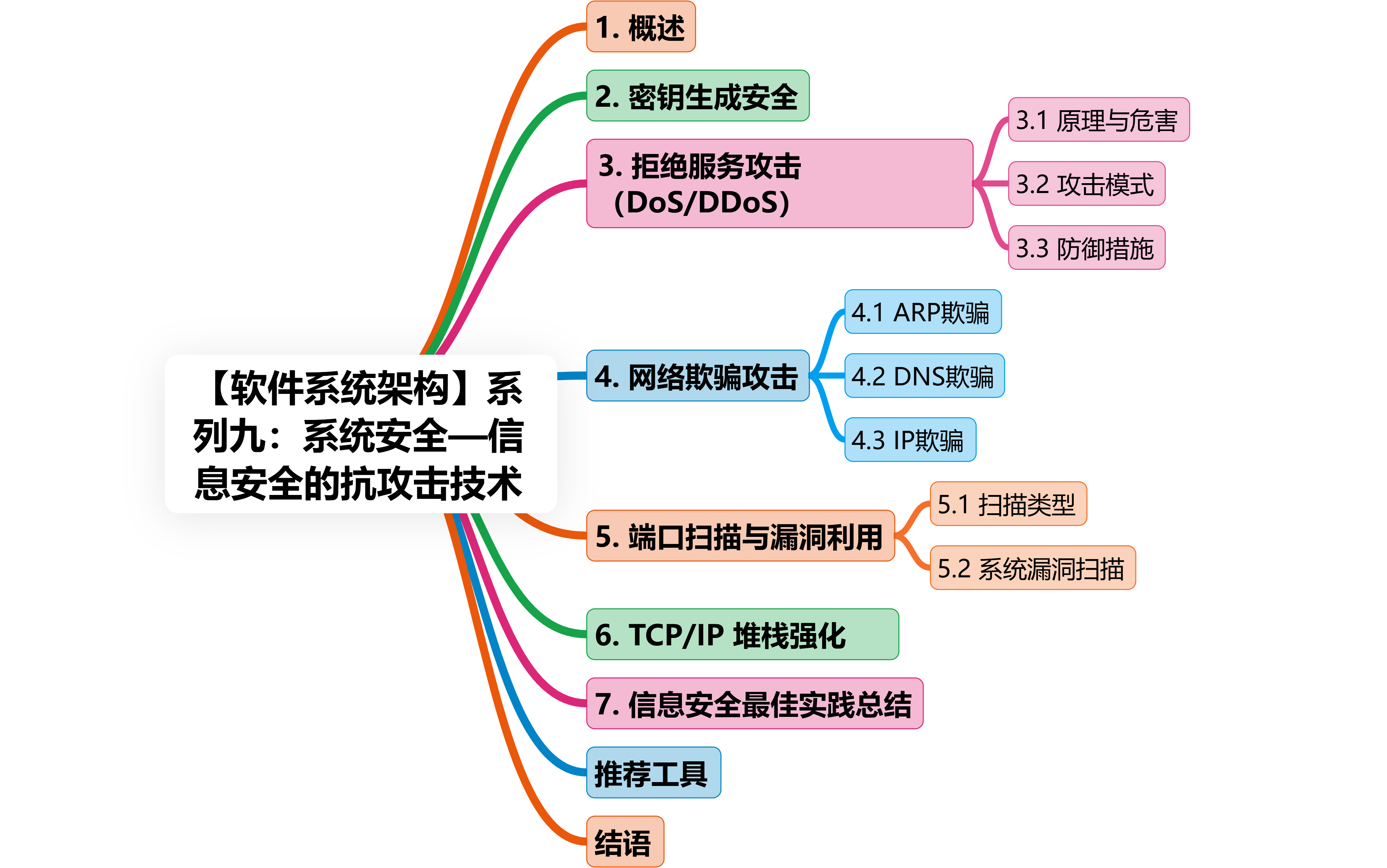 在现代网络环境中,信息系统面临着各种形式的攻击,其中包括拒绝服务攻击、网络欺骗、端口扫描等。为了有效抵御这些威胁,必须在密钥管理、系统加固和攻击检测等多个层面采取防护措施。信息安全防御的核心思路是:预防 > 检测 > 响应 > 恢复。