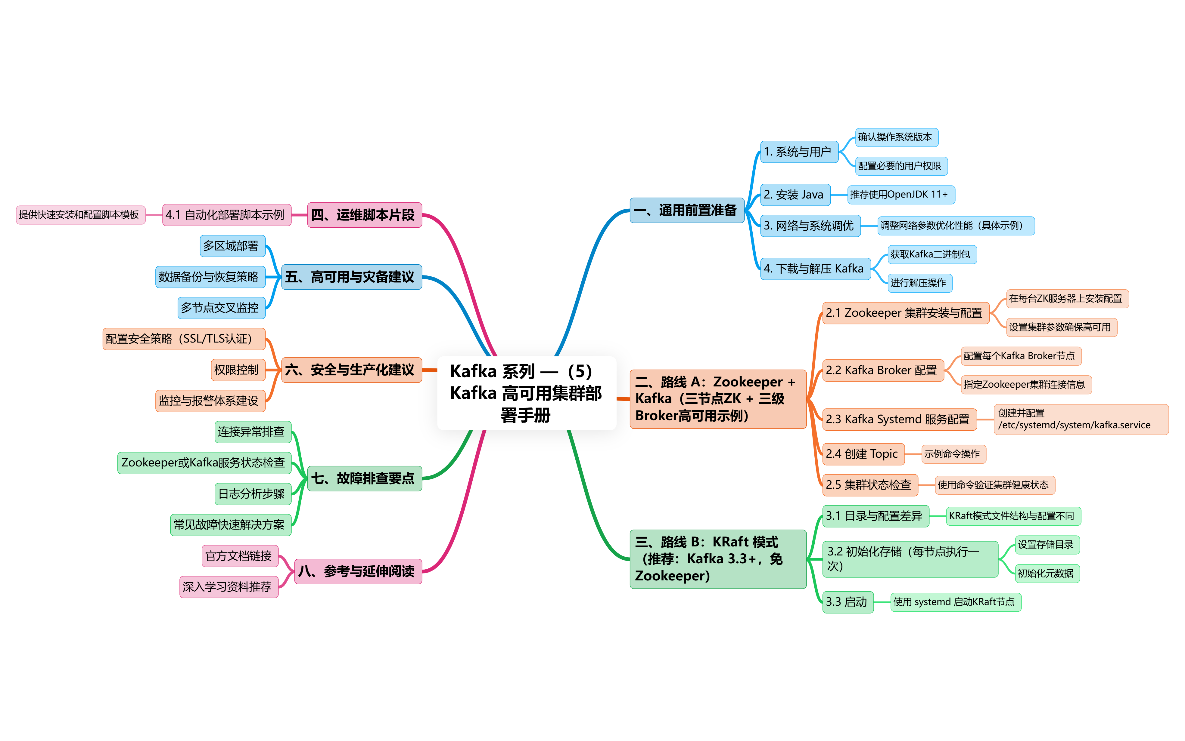 二、路线 A:Zookeeper + Kafka(3 节点 ZK + 3+ Broker HA 示例)