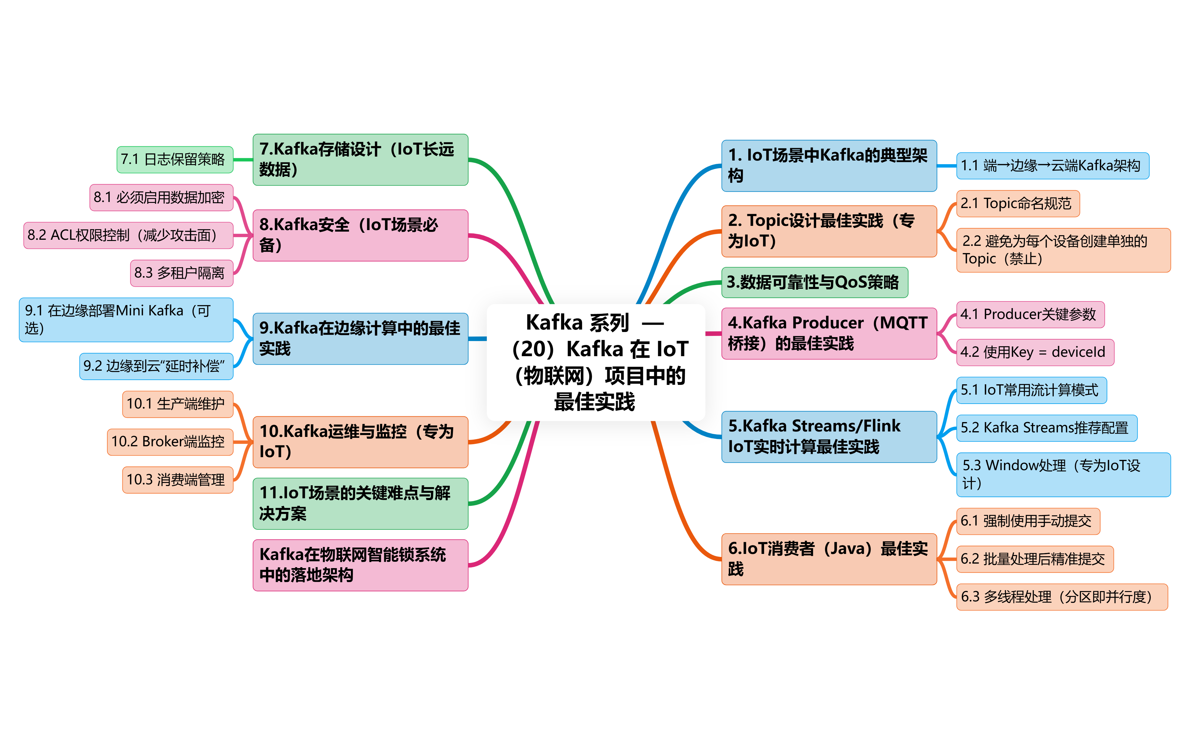 Kafka 在 IoT(物联网)项目中的最佳实践,从系统架构、吞吐量优化、可靠性、实时处理、安全、边缘协同等多个维度给出深度、可落地的方案。