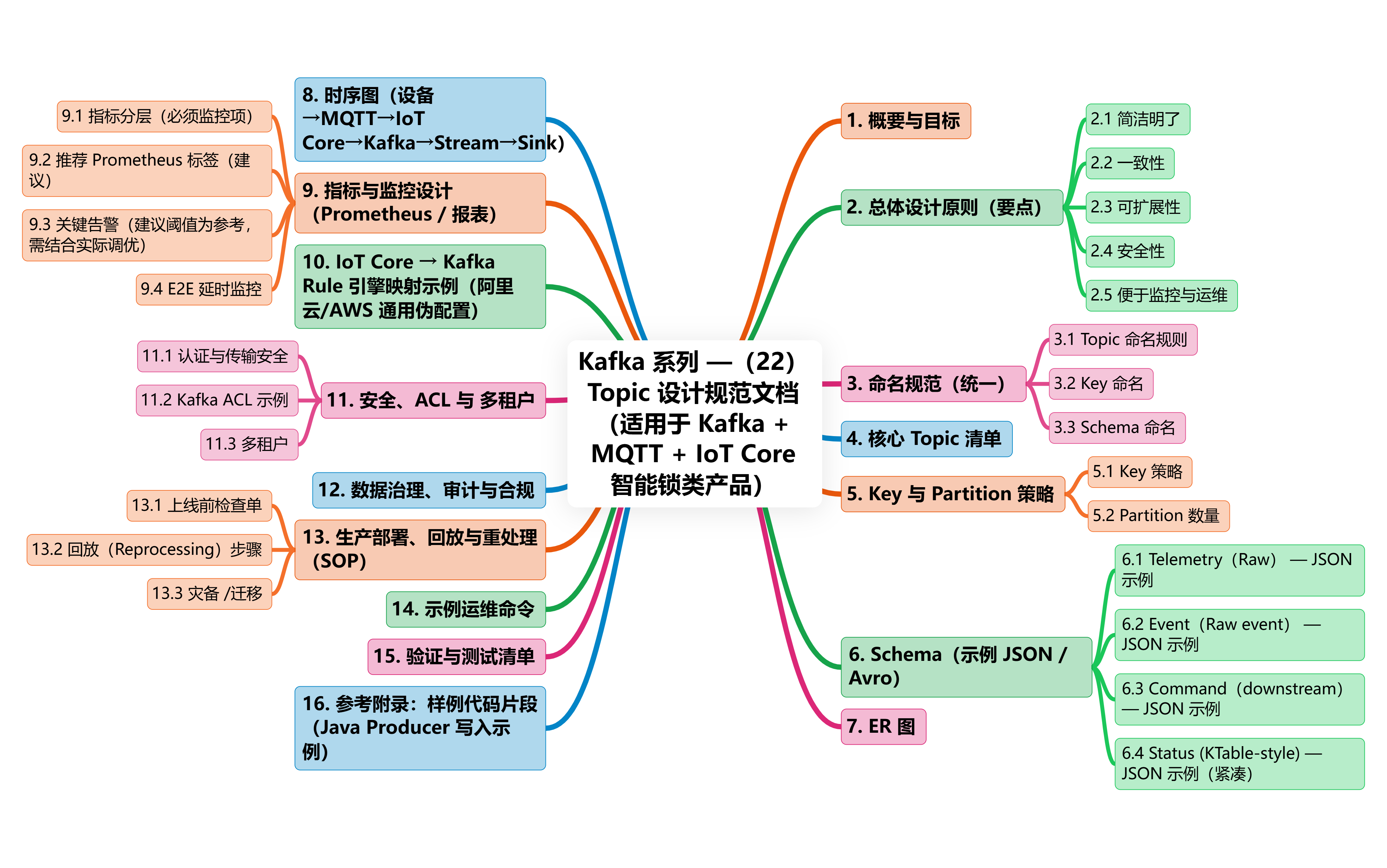 目标:建立一套面向 IoT(ESP32 智能锁)场景的 Kafka Topic 设计规范,确保: