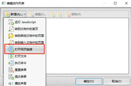 第四步、接下来跳转到“编辑动作列表”页面,选择“新增”-“打开网页链接”。