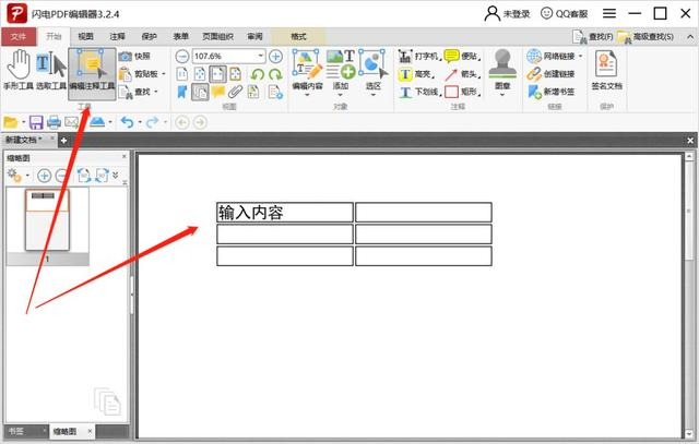 第六步、插入成功后,即可选择“编辑注释工具”编辑表格。