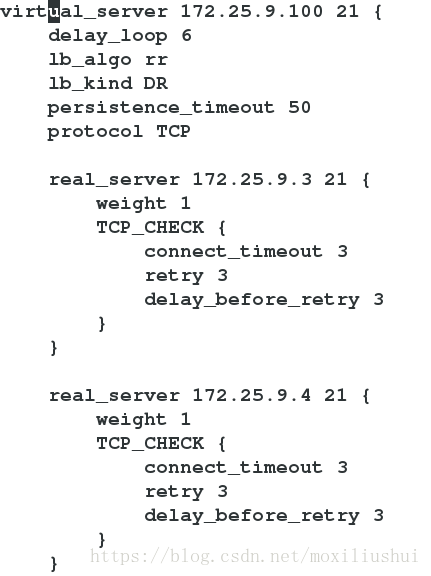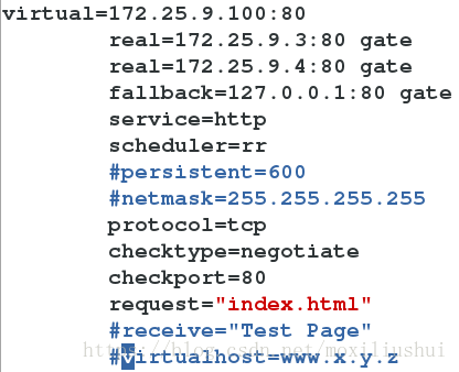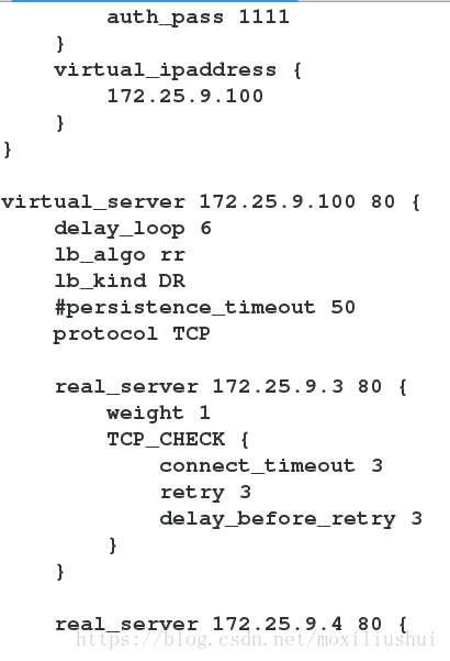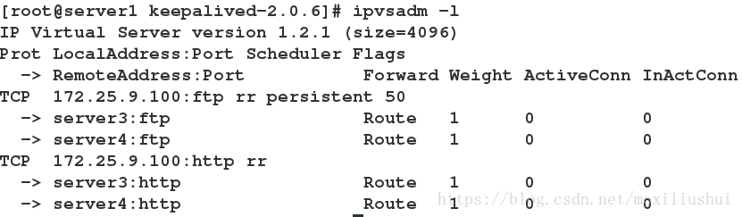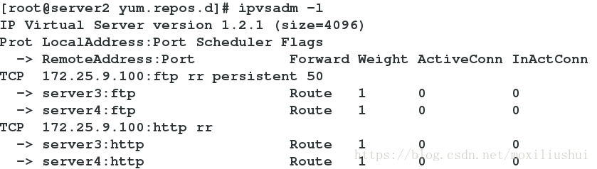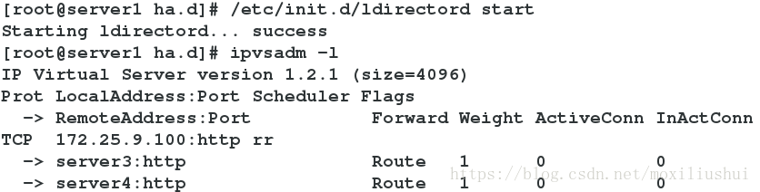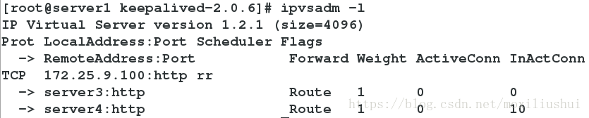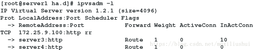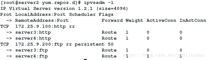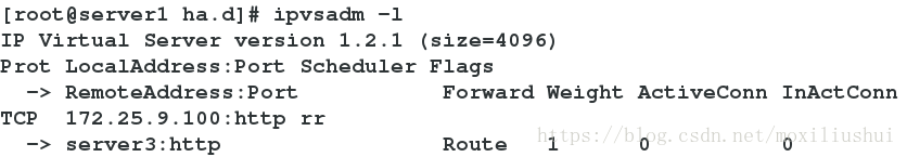 ipvsadm -a -t 172.25.9.100:80 -r 172.25.9.3:80 -g #给vip添加rip,使用DR模式 -g为DR模式