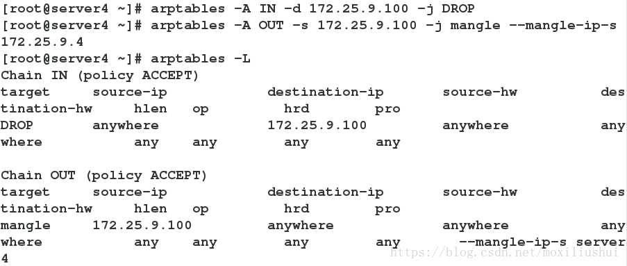 arptables -A OUT -s 172.25.9.200 -j mangle --mangle-ip-s 172.25.9.4